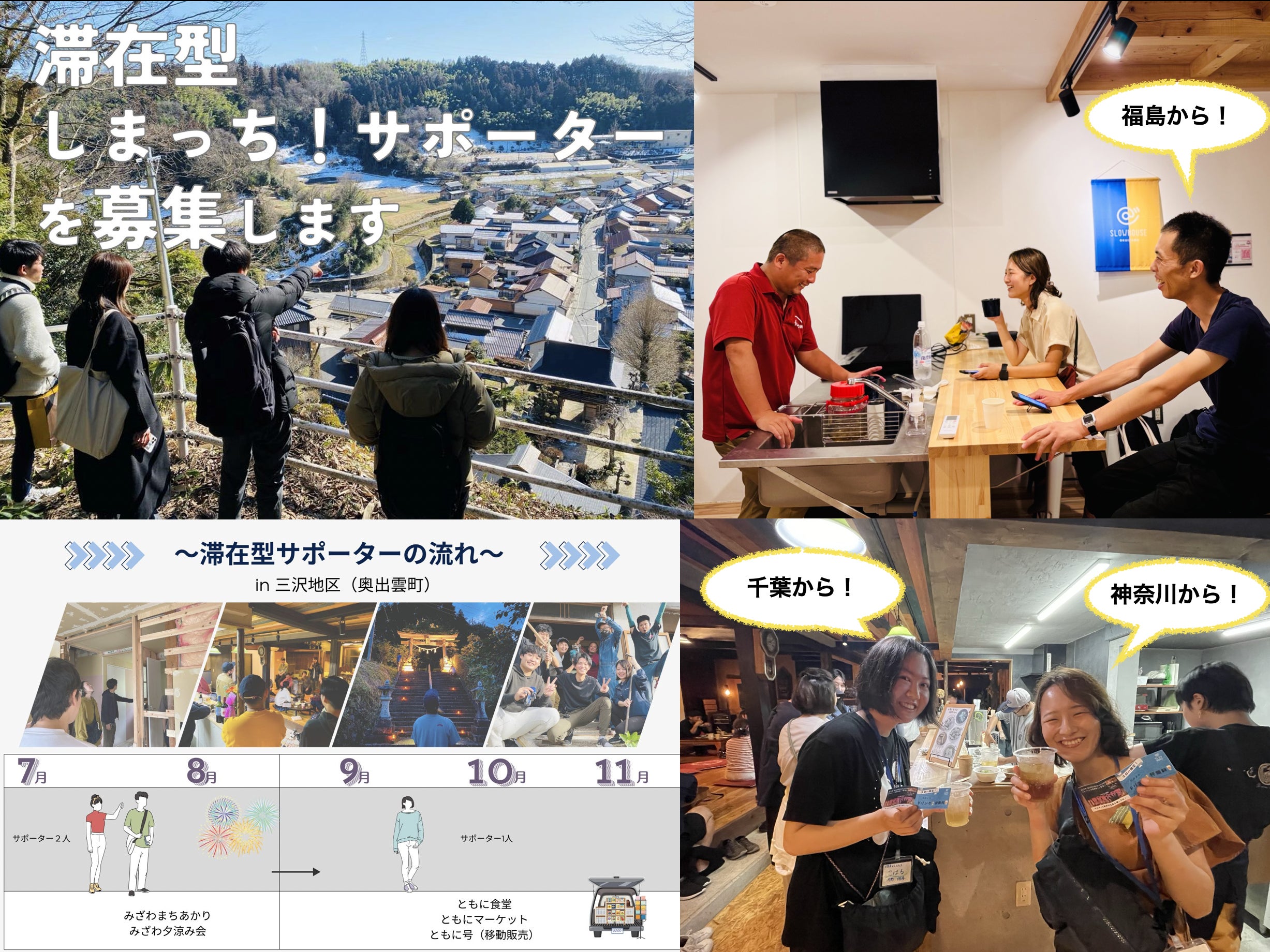 今年度初めてふるさと島根定住財団による『滞在型しまっち!サポーター』という取り組みがあった。滞在費をサポートする代わりに地域活動に関わってもらうという、関係人口創出の一歩先の動きを作るために生まれたものです。