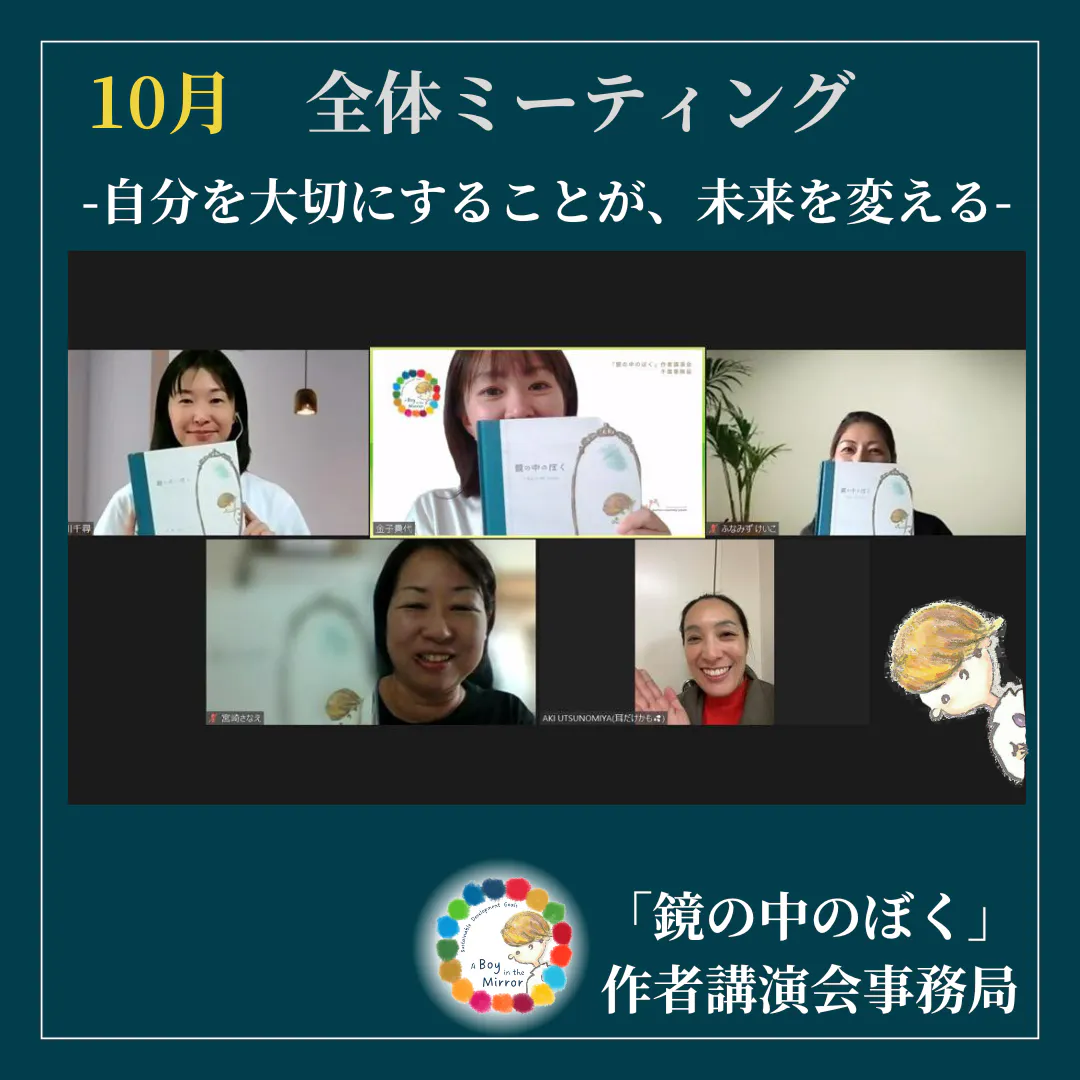 「鏡の中のぼく」作者講演会事務局です。 先日は、集まれる事務局メンバーのみんなでミーティングをしました。 現在の状況から、チラシのデザインや今後の予定等を共有し、講演会開 催まで、一人ひとりのできることを考えながら走り切ろう!と改めて 団結しました☆