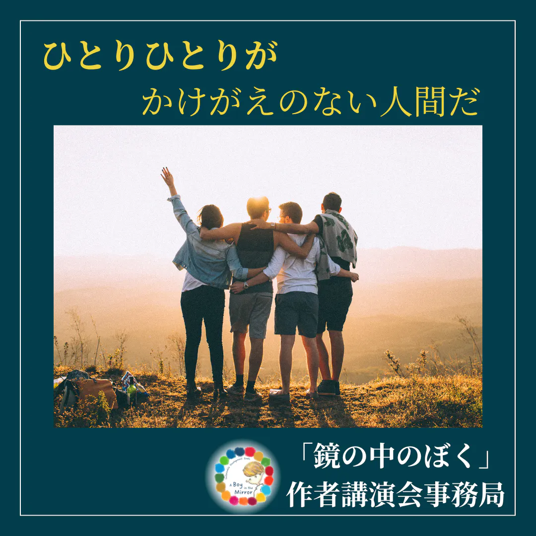 わたしたちはみな、生まれながらにして自由です。ひとりひとりがかけがえのない人間であり、その値打ちも同じです。だからたがいによく考え、助けあわねばなりません。