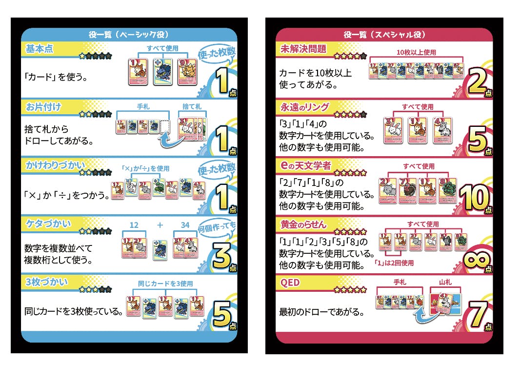 高得点の役には、円周率の3.14やネピア数(ネイピア数)の2.718など算数数学にまつわる数字が・・・