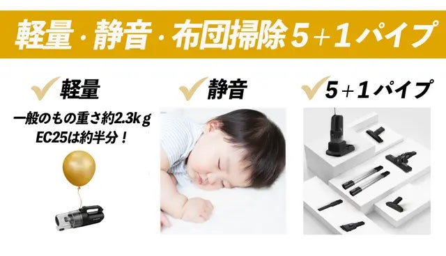 持ち合わせたこの掃除機は、静かな環境での使用に
