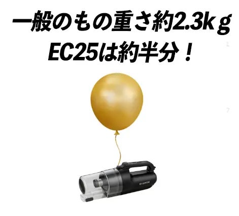 EC25は、コードレス掃除機のように軽く、バッテリー