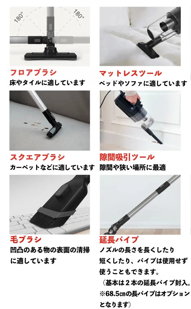 ※オプション延長パイプ使用(基本の延長パイプ2本+長パイプで約170㎝、