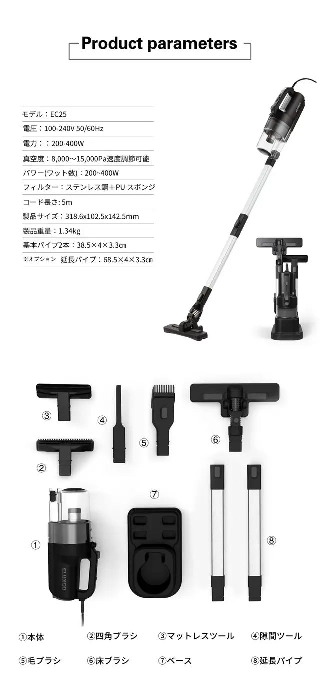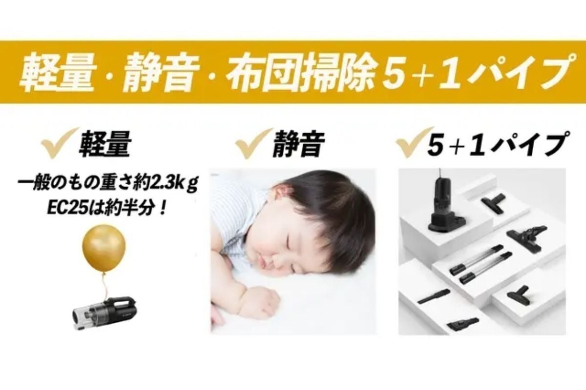 ダニ対策掃除機であるEC25。強力な吸引力により、