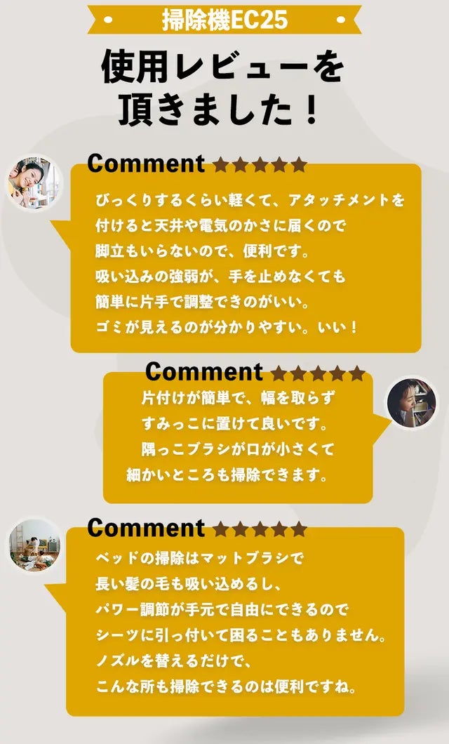 埃取りなど、様々なシーンでEC25は活躍してくれます。