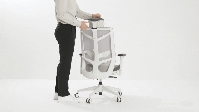 A5.ネックレストは上下に動かし調整できます。長時間のデスクワークの後、休憩でリクライニングを倒した時も、ネックレストがあれば頭と首を委ねられるのでより快適な休憩タイムをお過ごしいただけます。