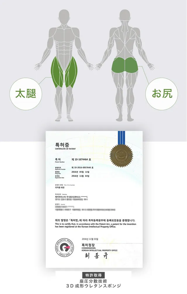 座圧の圧力分散をすることで、長時間のデスクワークで辛くなる、お尻と腰、そして太腿への負担を軽減します。