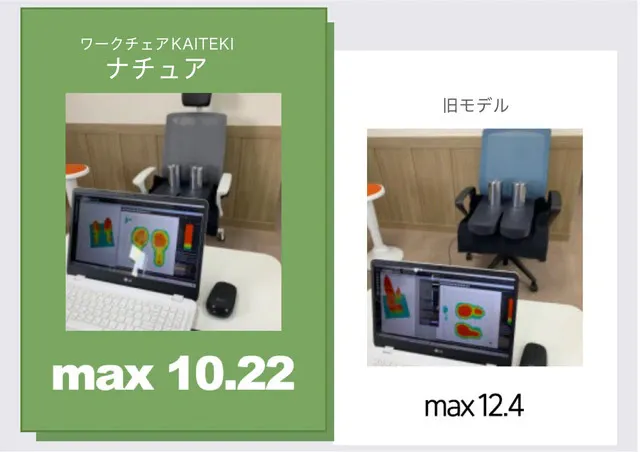 また、自社研究所で座圧分散テストを行ったところ、約20%の座圧の減少を確認できました。だから、長時間のデスクワークでもお尻が痛くなりにくい。