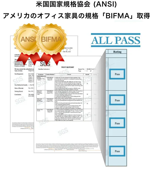 ワークチェア KAITEKI ナチュア」は、メーカーの敷地内にある研究所で、KSーGテスト及び海外基準をクリアできる品質を保つために、厳しい検査と、徹底した品質管理を行なっています。