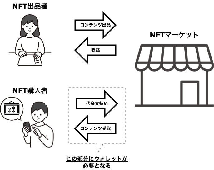 下記の通り、NFT購入時に使用するのが、NFTウォレットとなります。