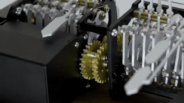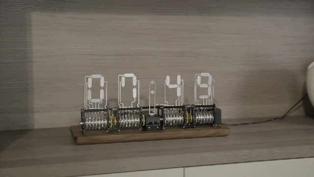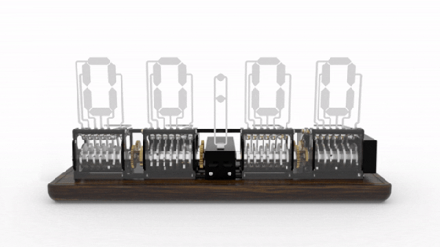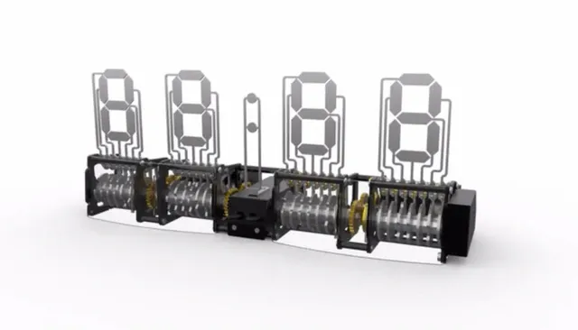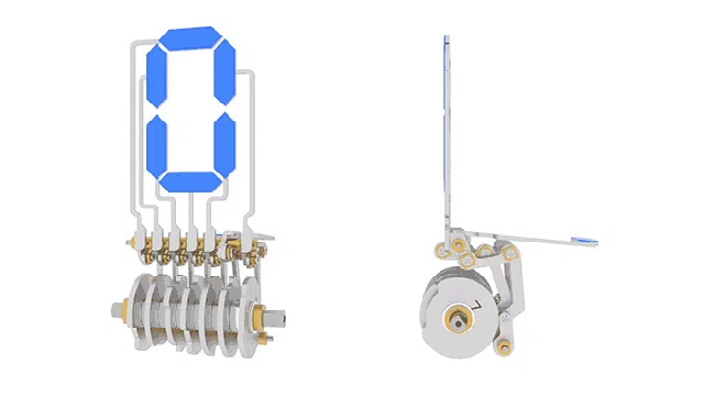 数字をかたどるセグメントは7つのパーツによる構成。モーターを利用してカムが稼働し、パーツが立ち上がります。