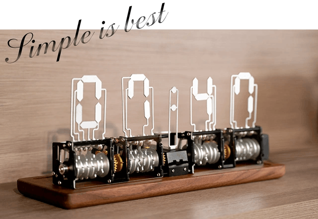 歯車やカムによる機械音と、毎分変わるセグメントで時刻を知らせてくれます。