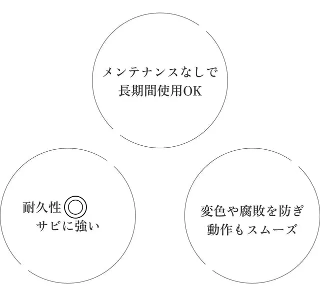 メンテナンスなしでも長期間使用することが可能なのも嬉しいポイント。手作りでも耐久性・操作性にはぬかりありません。