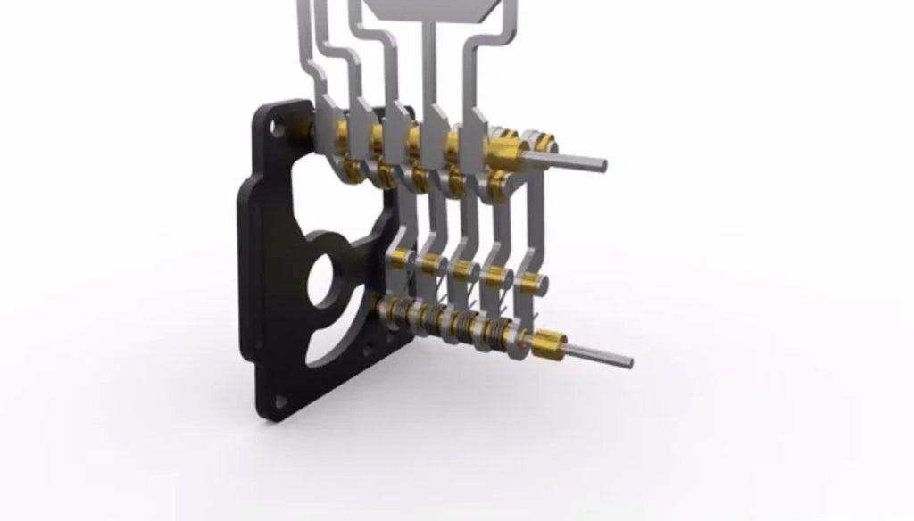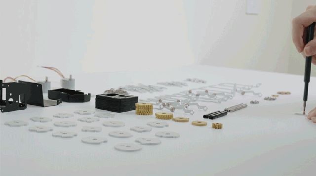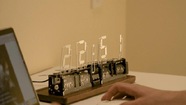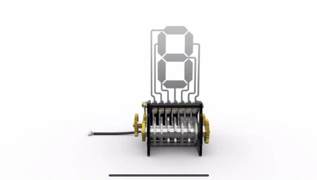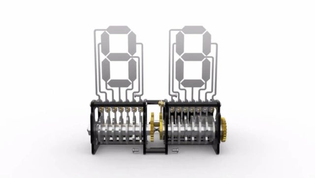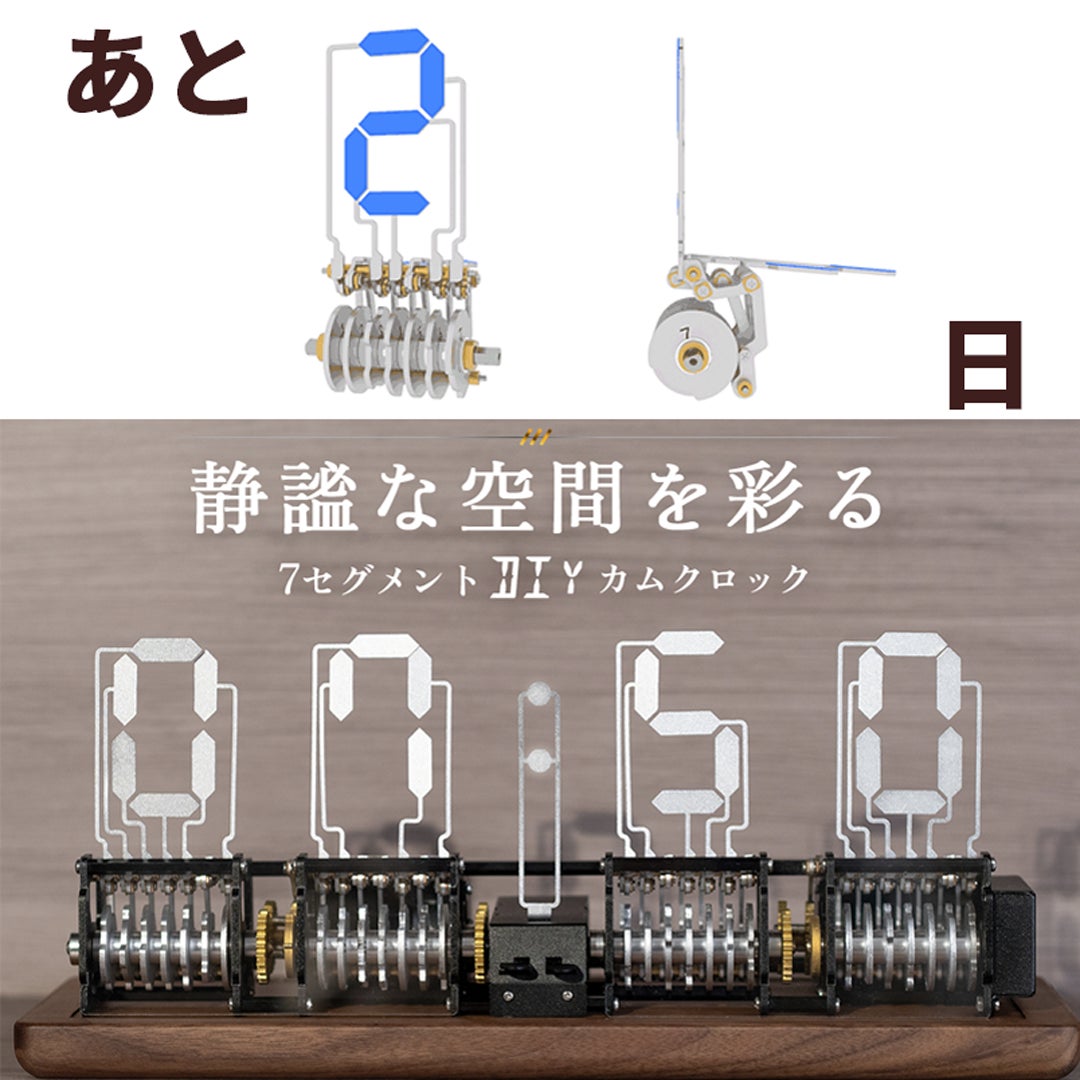 数字をかたどるセグメントは7つのパーツによる構成。モーターを利用してカムが稼働し、パーツが立ち上がります。