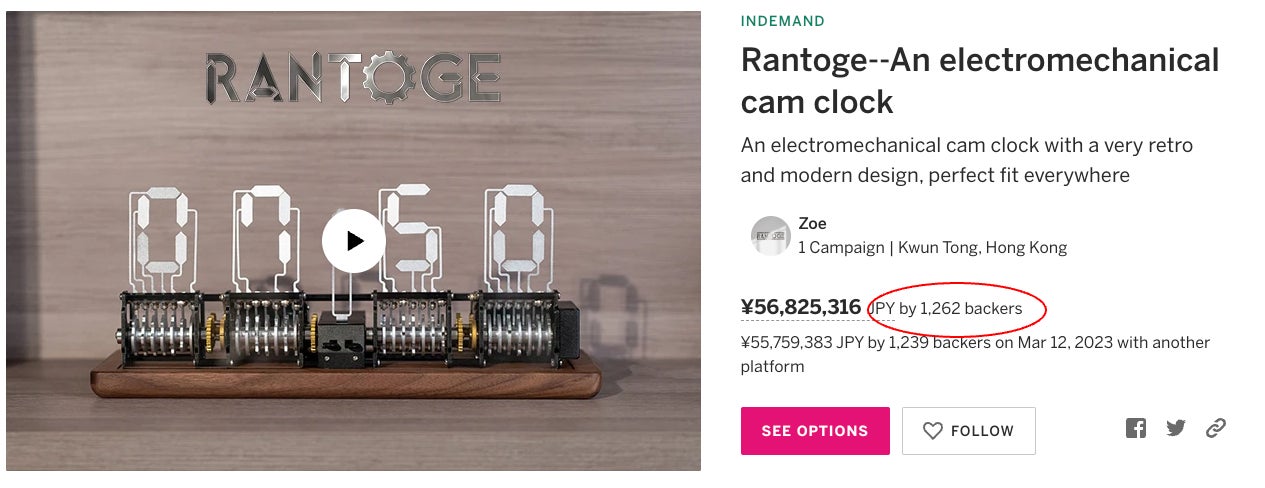 海外のクラウドファンディングで1,260名の支援者を集めた大人気DIYクロック。