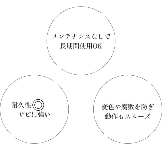 メンテナンスなしでも長期間使用することが可能なのも嬉しいポイント。手作りでも耐久性・操作性にはぬかりありません。
