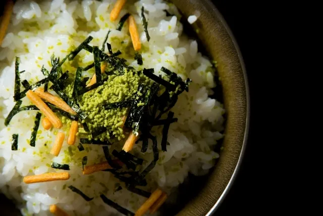 お茶漬けに「緑茶カプチーノ」を振りかけると、苦みがくせになる、一風変わった味わいになります。