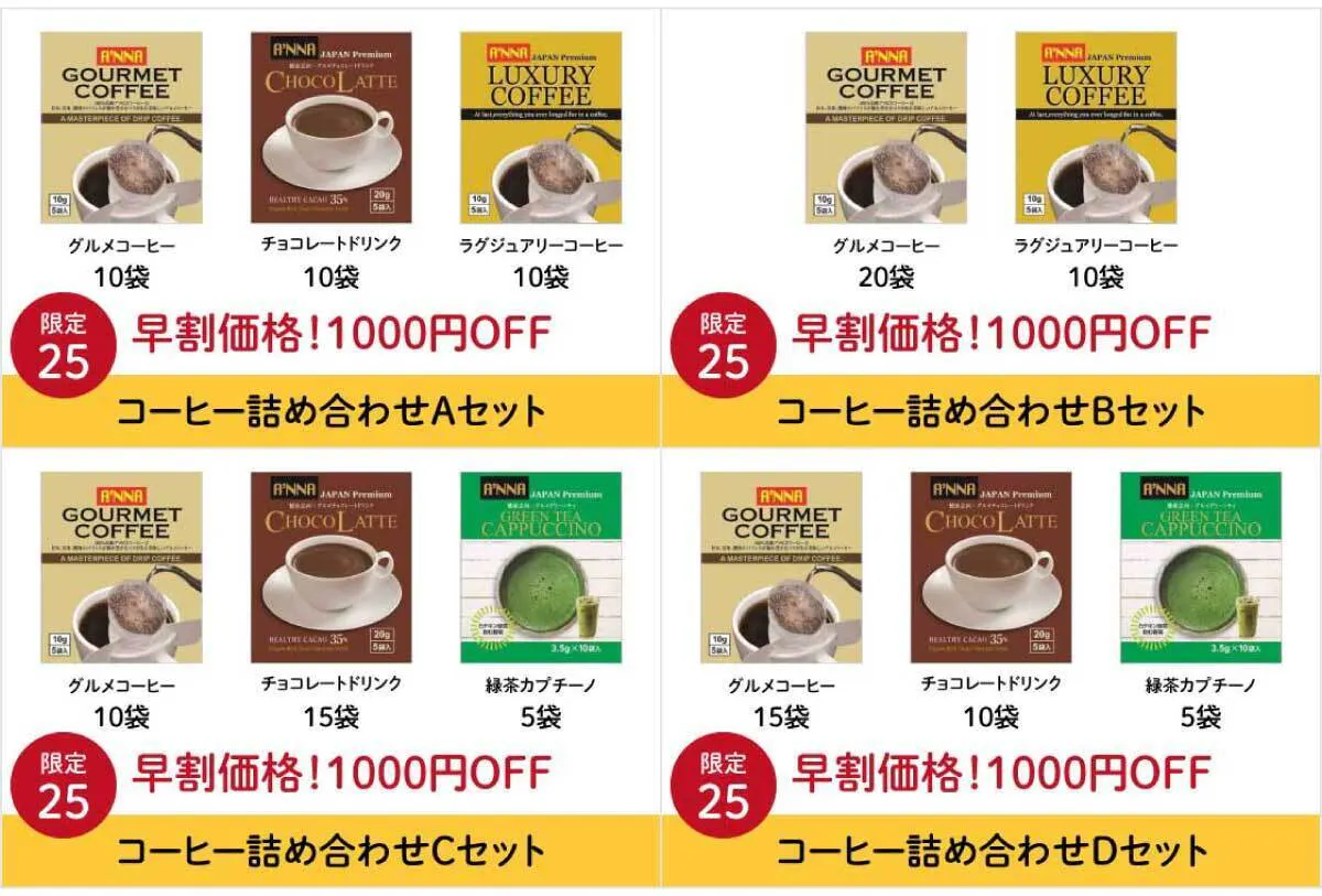 ■各種(A〜D)コーヒー詰め合わせセット:4000円