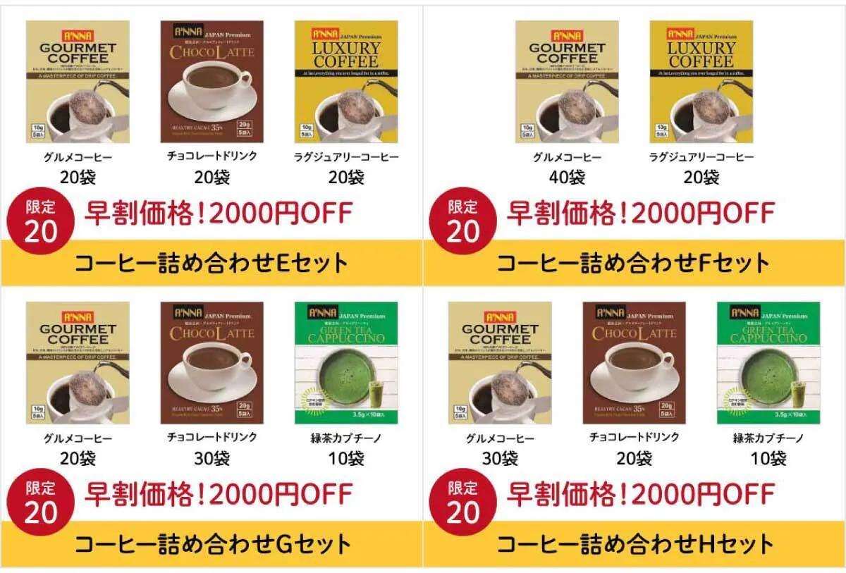 ■各種(E〜H)コーヒー詰め合わせセット:8,000円