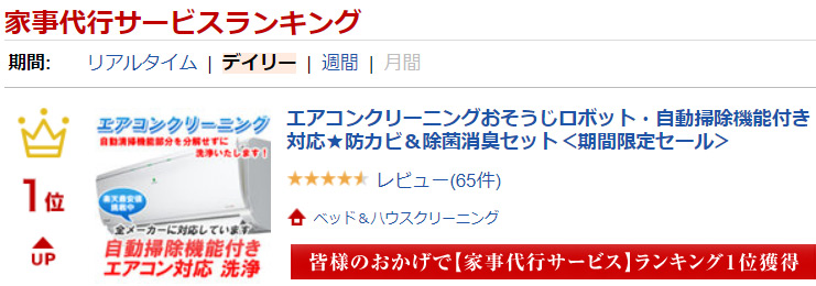 おかげさまで当社が運営する『bed &housecleaning』は楽天市場で『家事代行サービスランキング1位』を獲得しています。