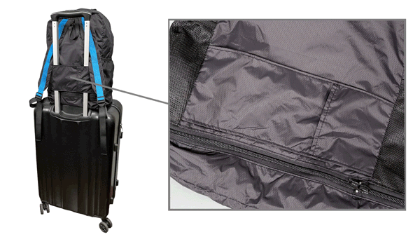 荷物が多いときのサブバッグとして使用する際に別のリュックに被せて装着することが可能です。又、撥水生地なので雨よけとしても機能します。