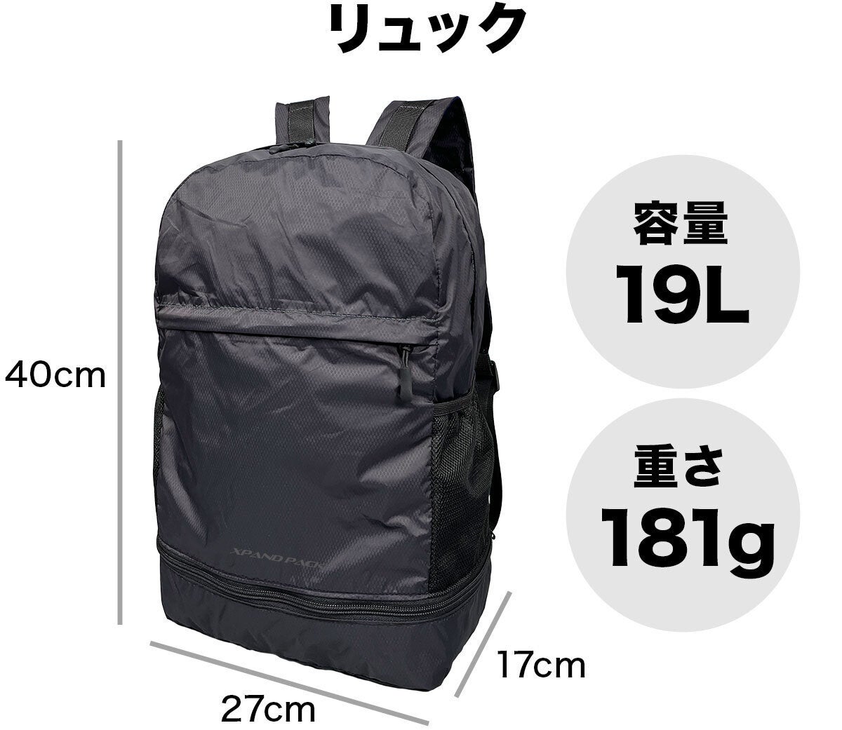 「XPAND PACK (エクスパンド パック)」は、手のひらサイズに折りたためるリュックで、どこにでも持ち運べる便利さが魅力です。