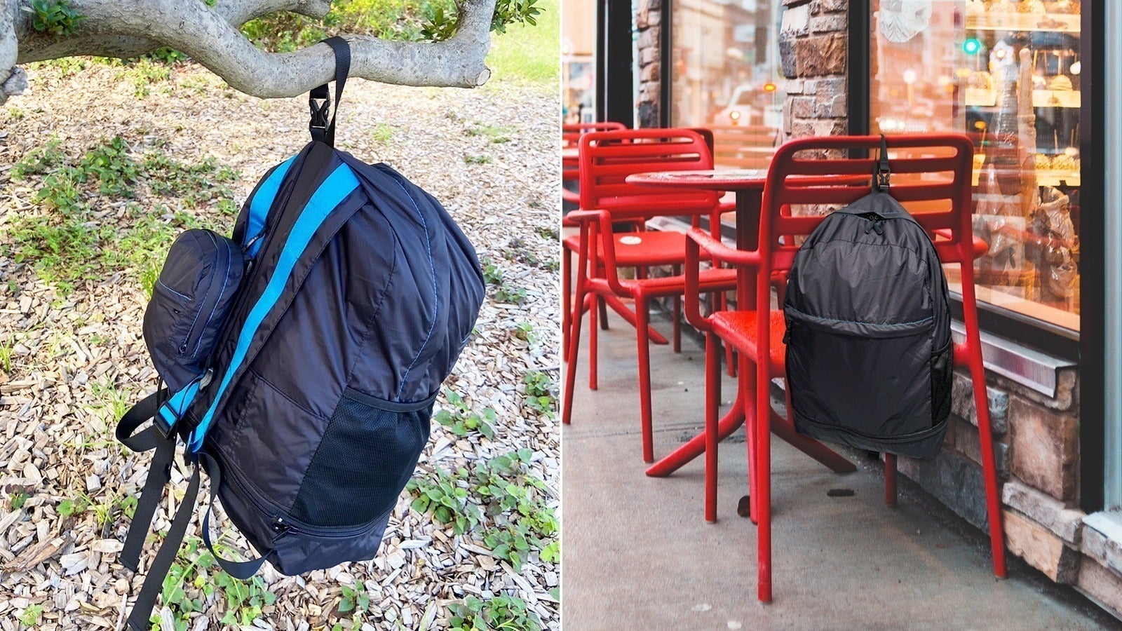 又、アウトドアやスポーツでも木やフェンスに掛ければ直接地べたに置かずに汚れ防止になります。荷物も取り出しやすくなるので便利。