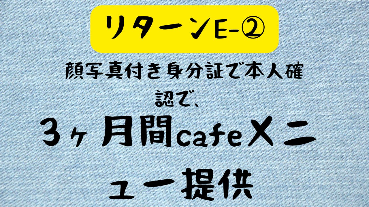 顔写真付き身分証で本人確認完了で、cafeオープン日より、3ヶ月間cafeのメニュー提供致します!