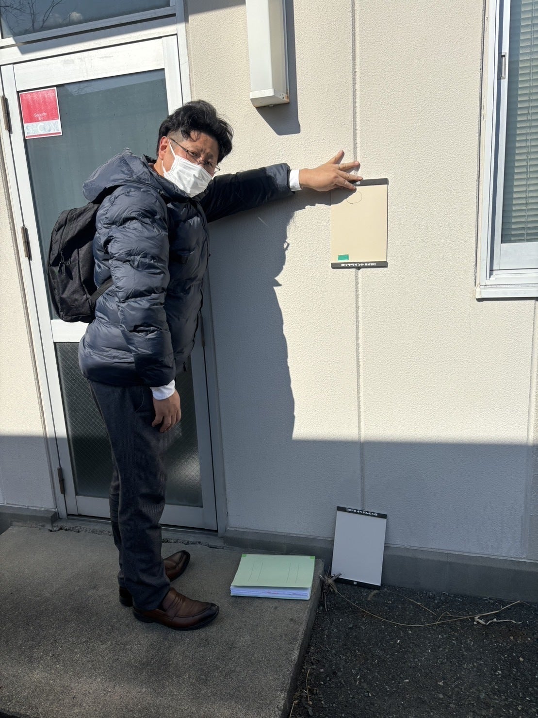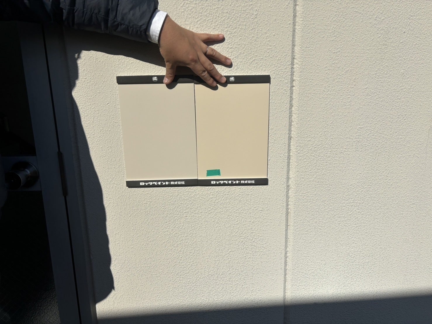 色のサンプルを業者の方に作っていただいたので現地の壁に当ててみて色決め!