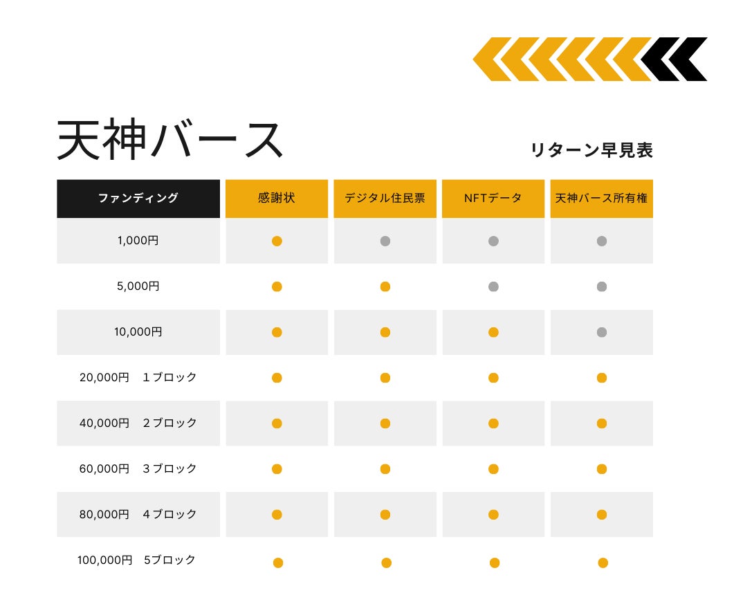 ・役務の対価:『天神バース』サイト開始およびご購入された所有区画NFTデータ発送及びデジタル住民票発送、バース内オリジナル看板に希望者のお名前(法人個人 )記載を持って役務完了となります。
