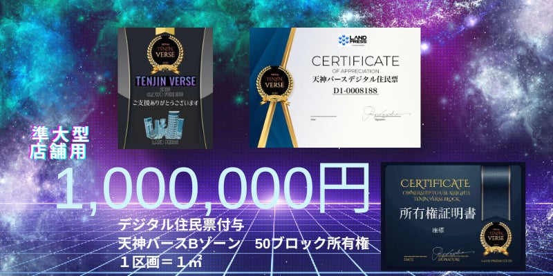 天神バース内の 2ブロック(1区画=1m平米)の使用権利