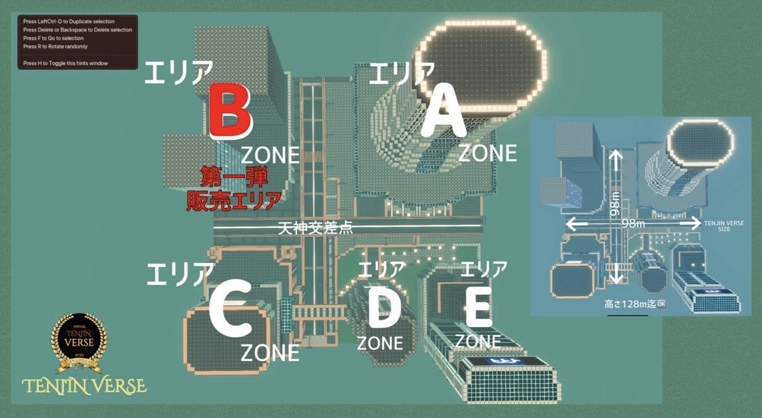 バーチャル空間での経済活動を可能にし、第一弾では、天神バース内Bゾーンのスペースにて