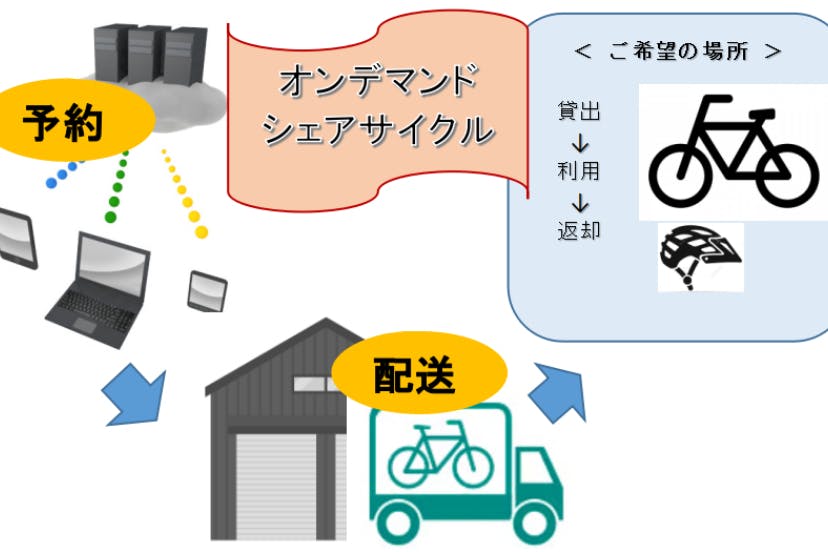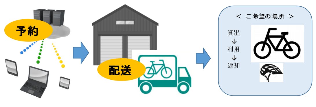 旅先で利用可能な自転車のサービスとして、既存のサービスにはなかった、下記のようなサービスを実現したいと思います。