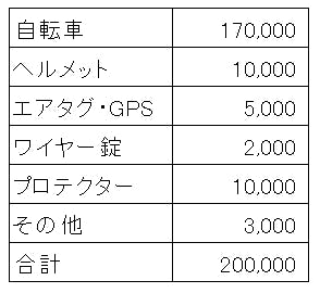 ・ヘルメット・プロテクタ・GPS等の備品購入費用(下表を目安としています)