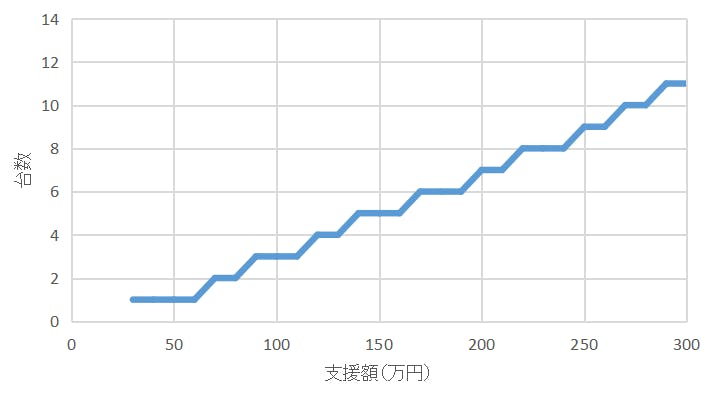 ご支援額に応じて、下のグラフを目安として購入台数を決めていく予定です。