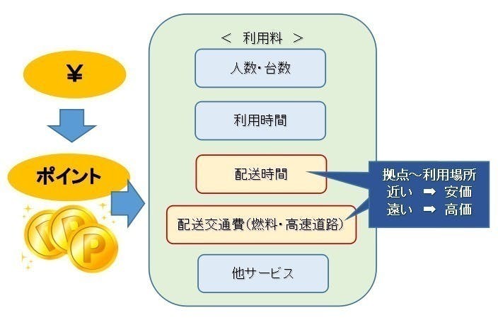 配送時間はGoogl Map 等により、算出させていただき、 1,000P = 1時間 とします。
