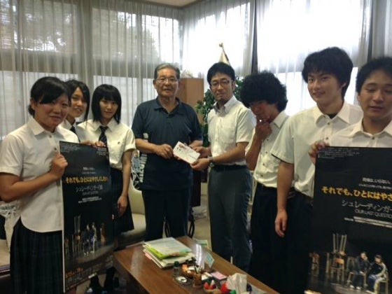 大沼高校演劇部のみなさんが、地元福島県会津美里町の渡部英敏町長の元を訪問しました。渡部町長から、 「原発事故による現在進行形の福島の現実を風化させないためにも、東京でがんばってきてください!」 と激励の言葉を頂きました。 演劇への支援を通して、被災民のことを忘れない! 原発事故の問題を忘れない!の声を私たちはあげたい。地元の高校生はそんな期待を背負って、下北沢にやって来ます。皆様のご支援、引き続き宜しくお願いします。