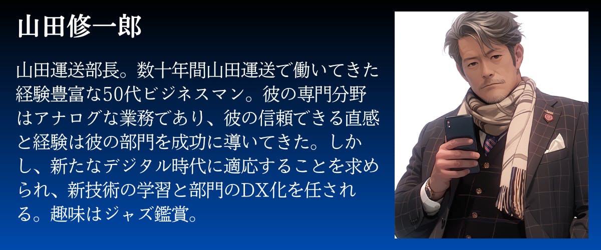 地方の運送会社の部長、山田修一郎が、DXの推進を命じられ、AIの世界に足を踏み入れる。彼は、AIの「学ぶ楽しさ」を発見し、組織の変革に挑む。
