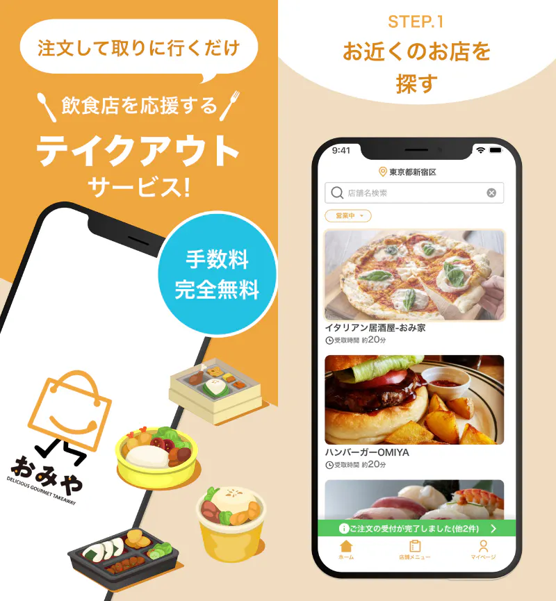 飲食店が無料で使える「おみや」は、操作が簡単で、これまでにないシンプルなアプリです。現在、多くの飲食店がデリバリーを利用していますが、それではお客様の反応を直接見ることができませんしなにより45%以上の手数料は重荷です。