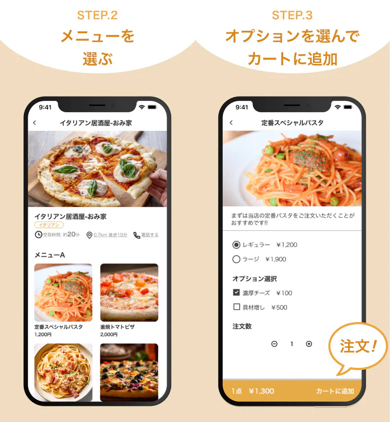お店に寄るという手間はかかってしまいますが、お持ち帰り用に最適化した料理を手渡しすることができることはお客様にとってはデリバリーよりも美味しい料理を食べることができ、お店にとってはお客様と対面でやりとりができます。
