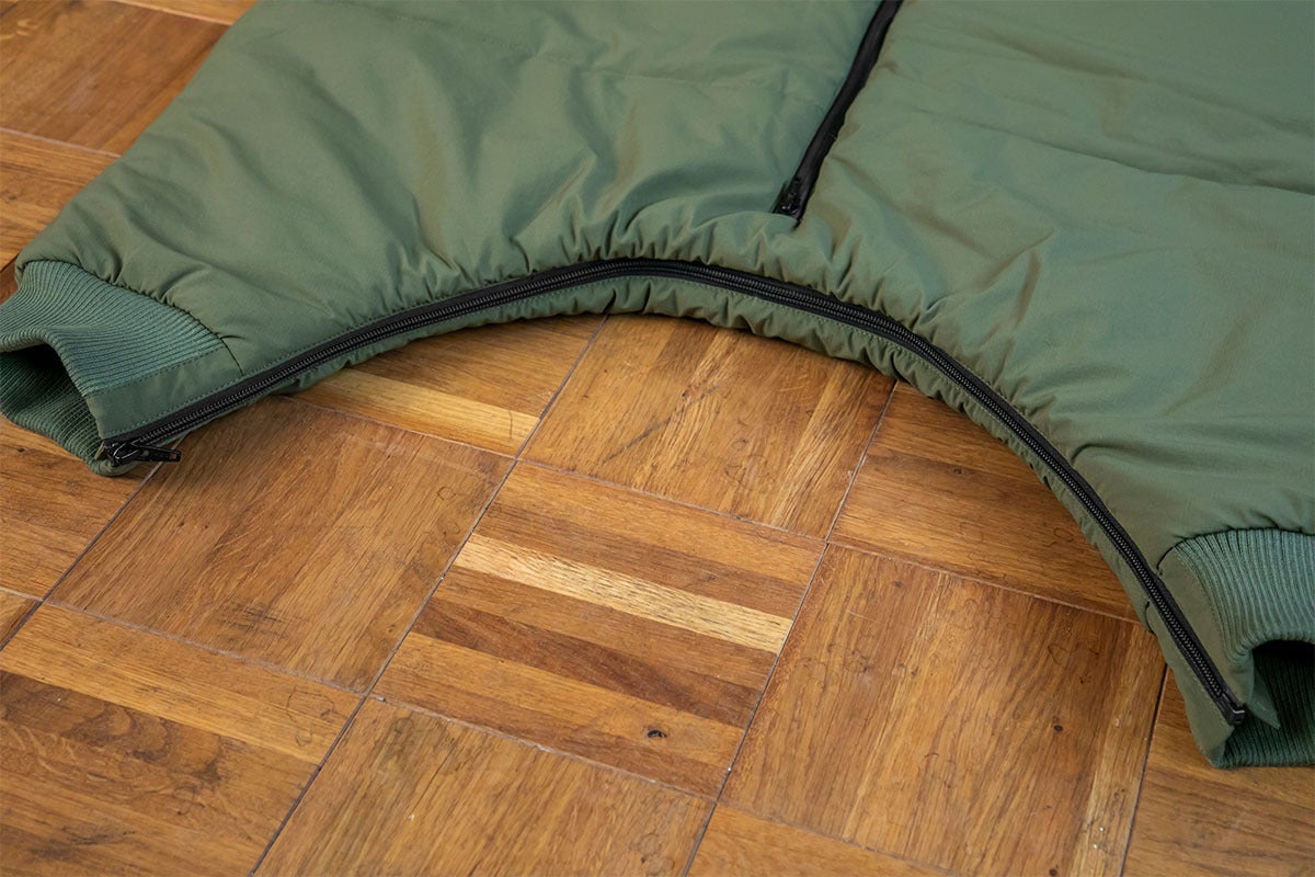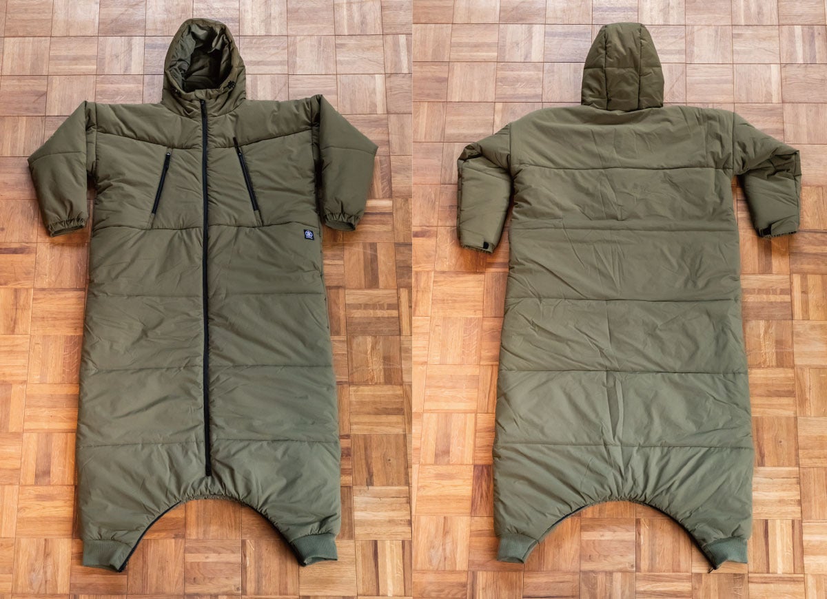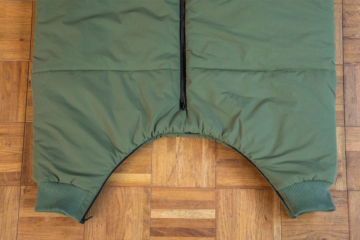 裾まで伸びたファスナーは下からも開くので足を出し入れでき、脱がずにトイレも対応できます。