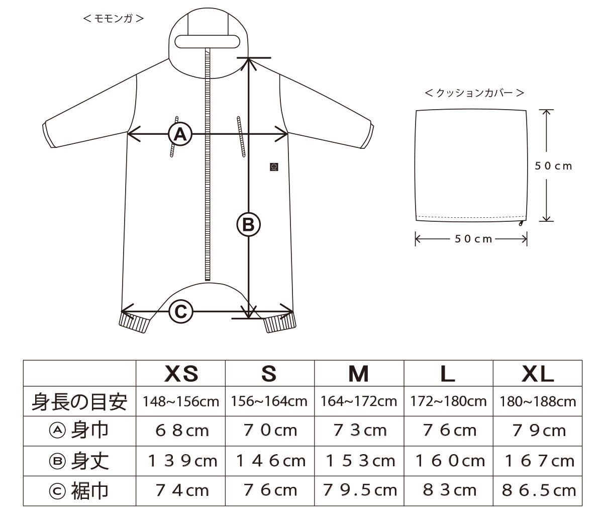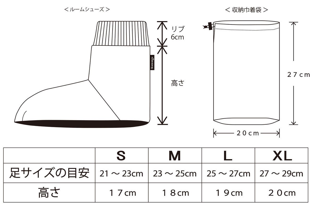 XS、S、M、L、XL の5サイズ