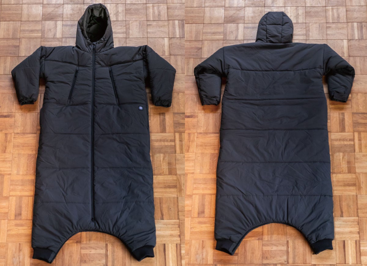 裾まで伸びたファスナーは下からも開くので足を出し入れでき、脱がずにトイレも対応できます。