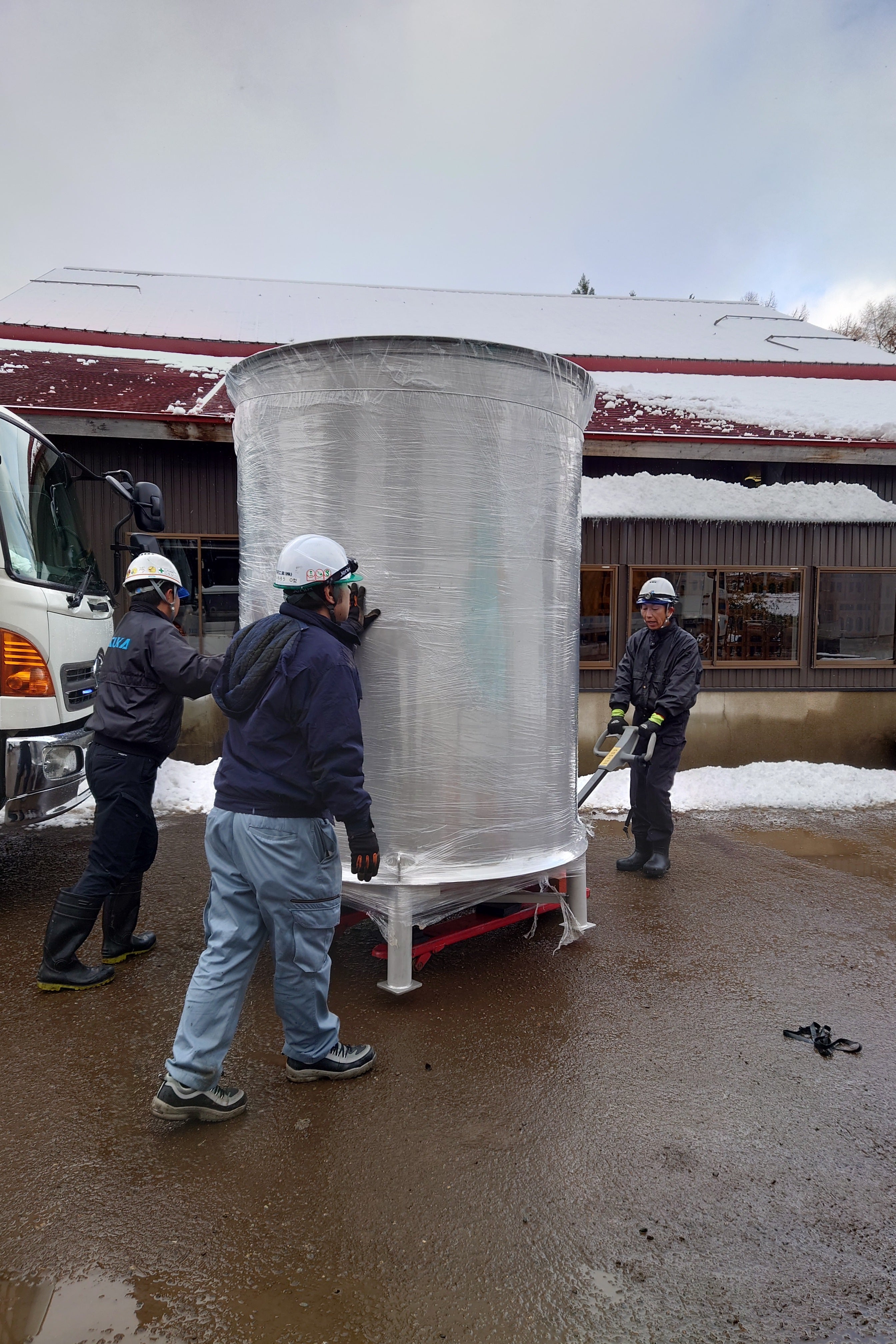 東日本大震災で半壊し、その後の度重なる震災によって倒壊が進んだ喜久盛酒造の本社蔵。 その被災した土蔵を解体し、新たな製造所を造る為のプロジェクトです。