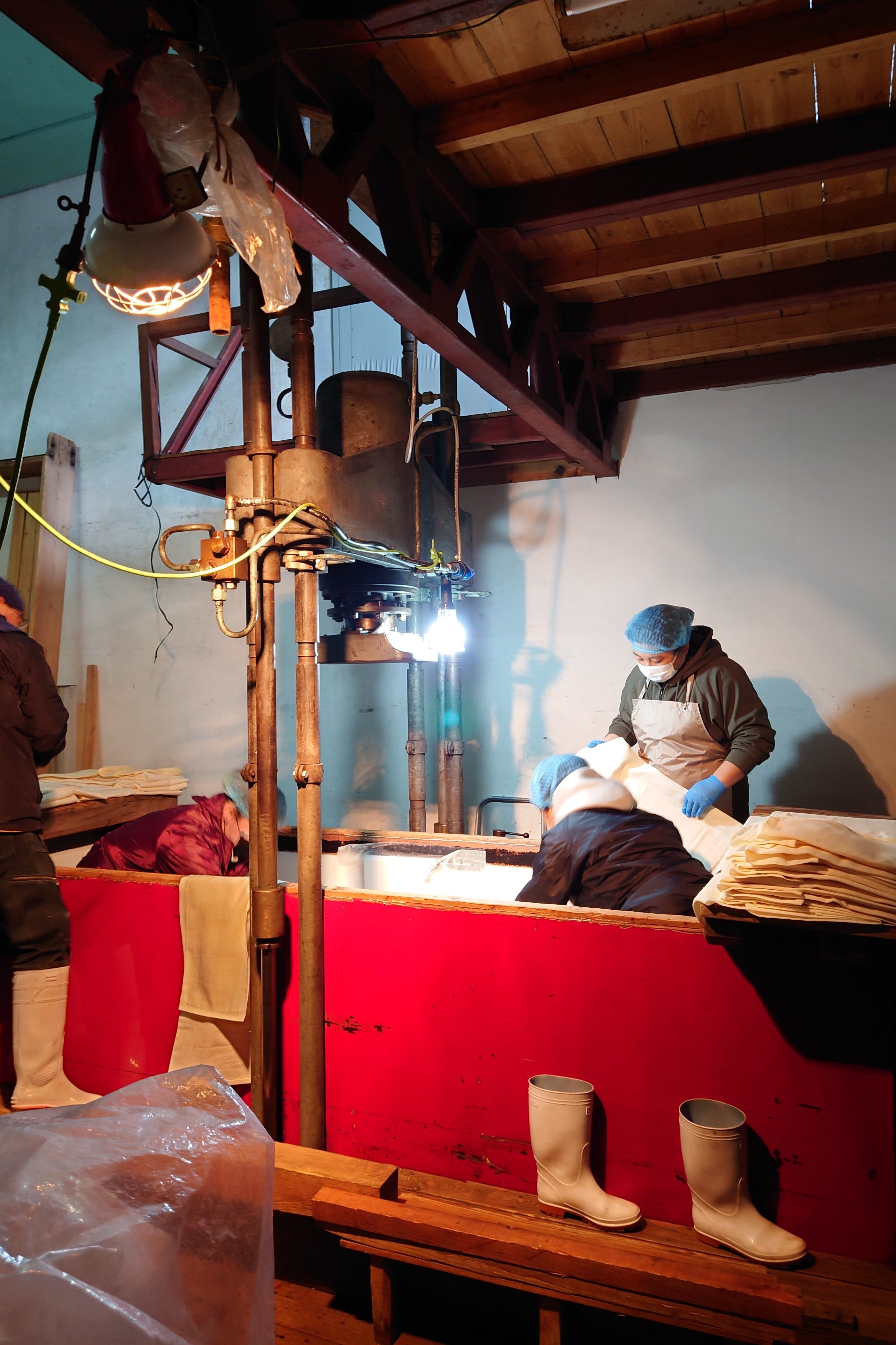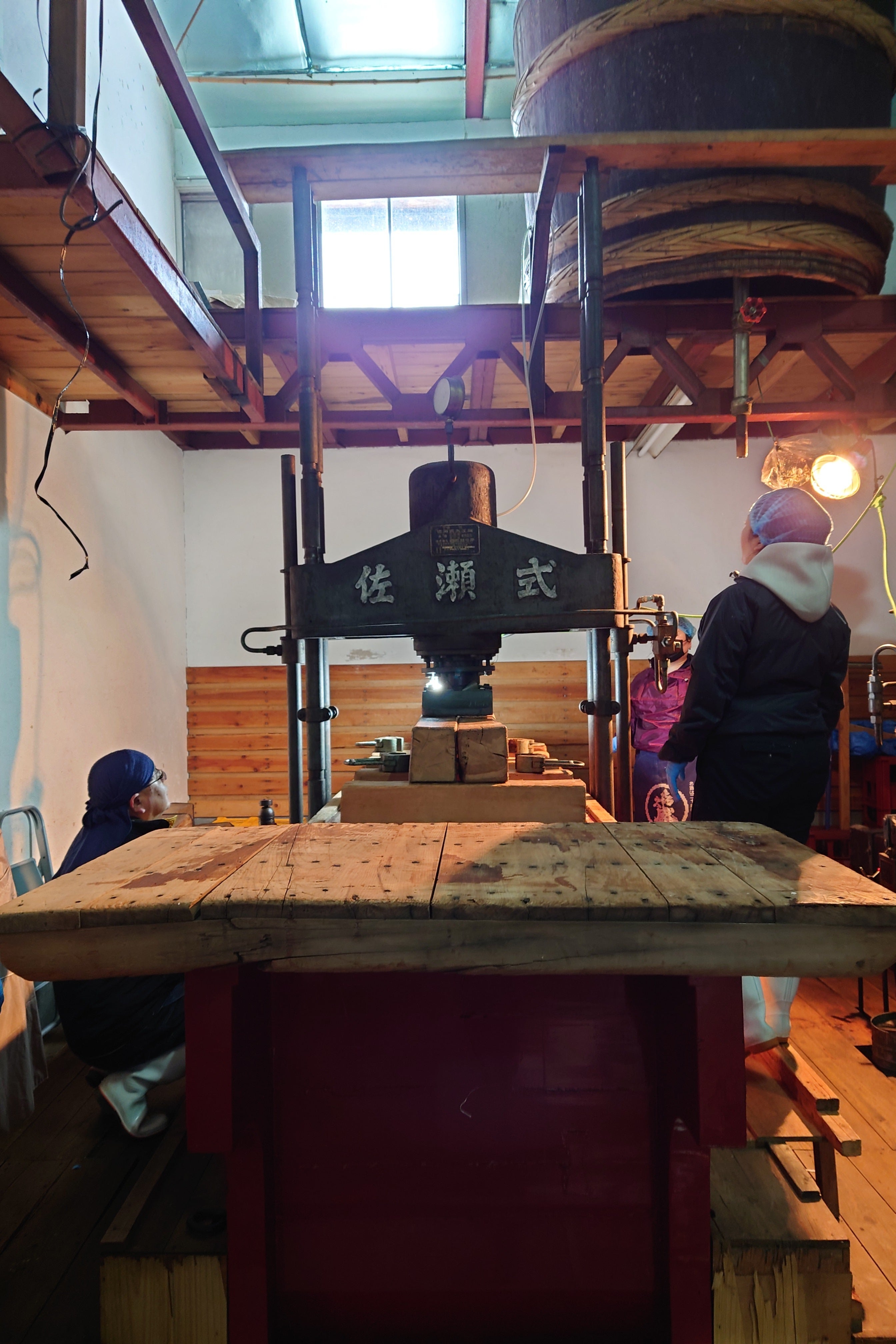 本社の製造所に新しく導入した最新型の搾り機はこの作業や重い木材を積む必要がなくなり、非常に楽になります。