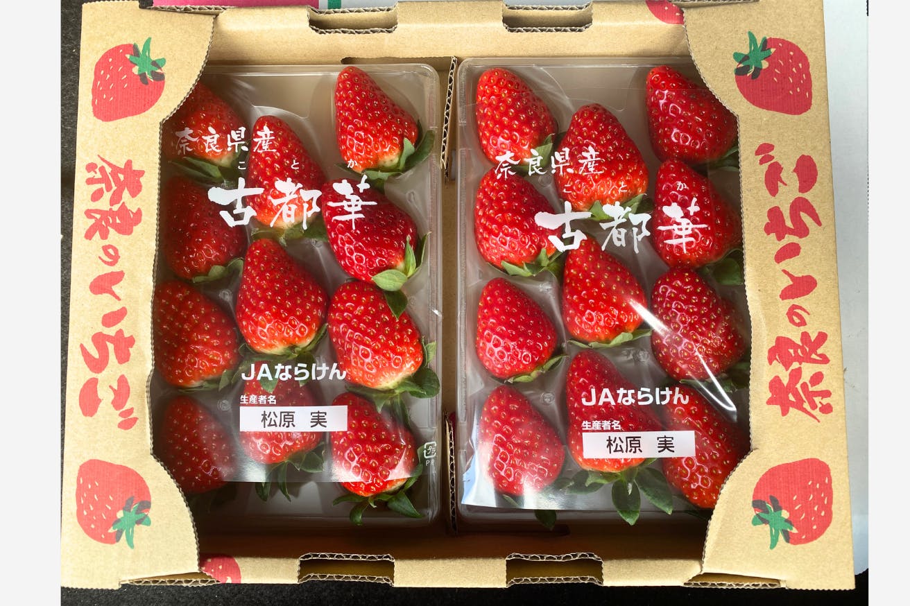 奈良県の明日香村にある松原農園様に訪問し、イチゴ(古都華)を入手しました。