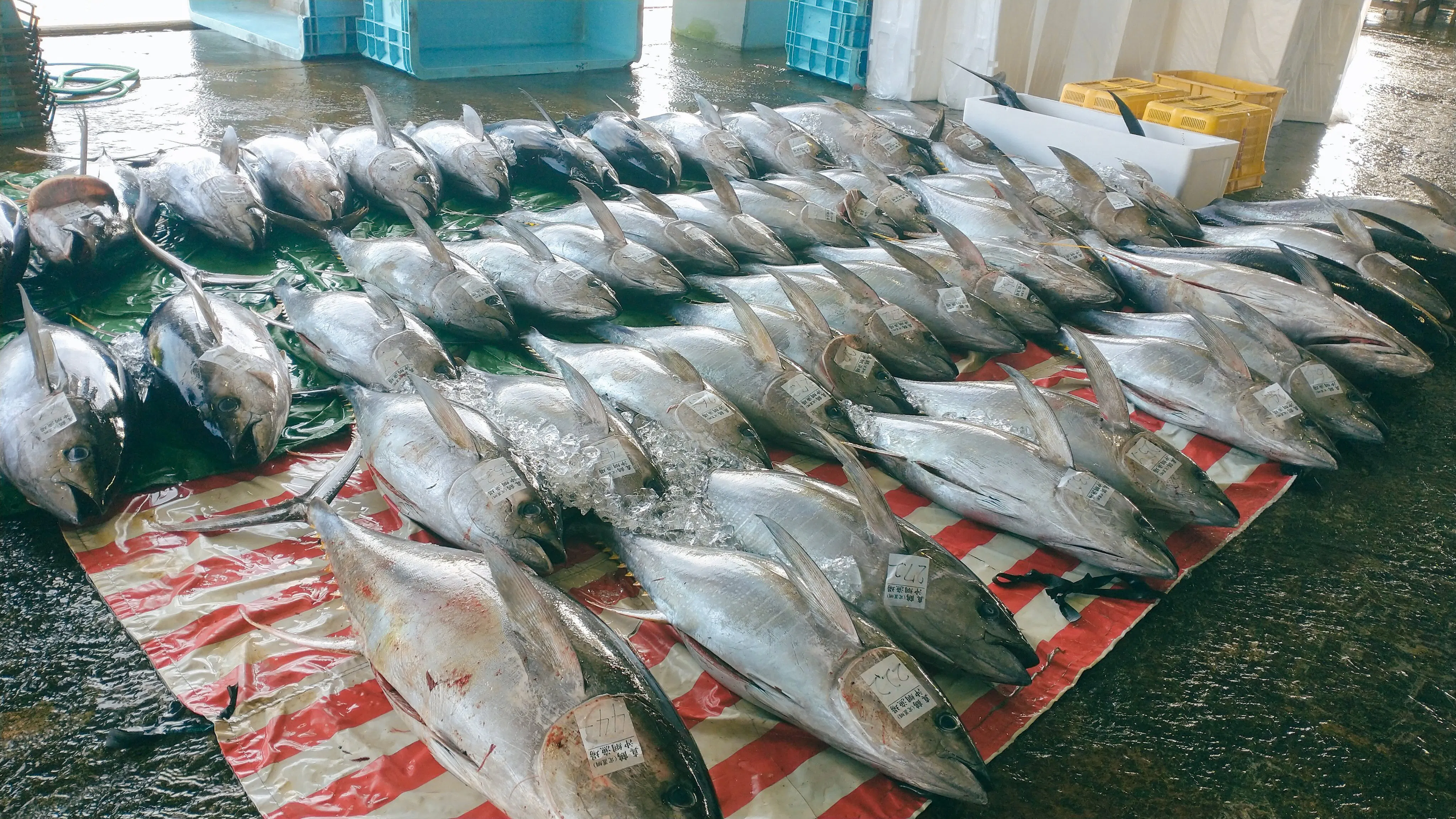 この日はキハダマグロがたくさん上がっていました。すごい迫力。