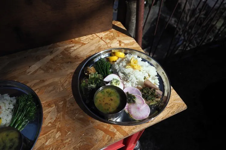 みんなで食材を調達してワンプレートに。美味しかった!ぽんぽこファームさんのオーガニック野菜をスパイスプレートに