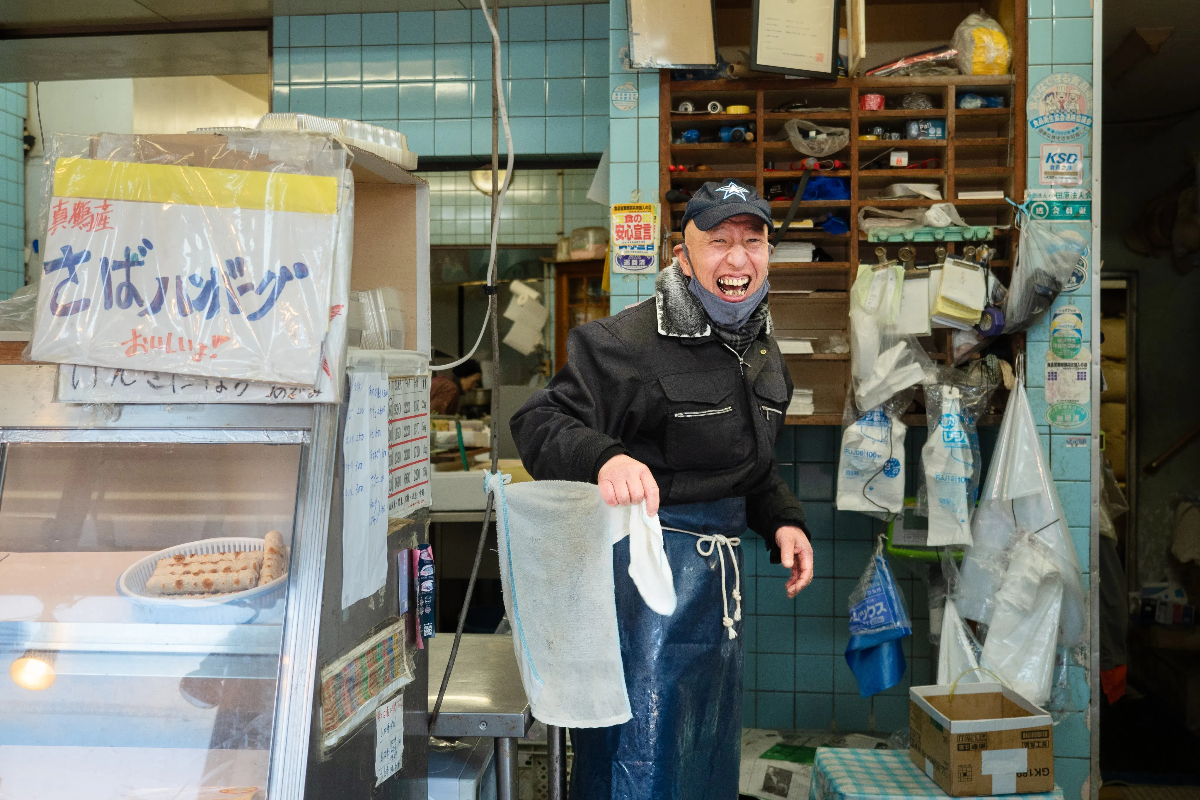 真鶴の玄関口、二藤商店の二藤昇さん。お店には新鮮な魚やお惣菜が並ぶ。