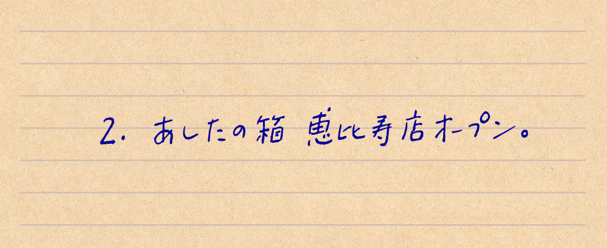 2. あしたの箱 恵比寿店オープン。